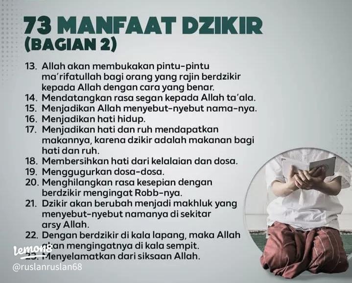 Untuk informasi lebih lanjut tentang manfaat berdzikir, kunjungi https://www.ruangguru.com/blog/manfaat-zikir-bagi-umat-islam.